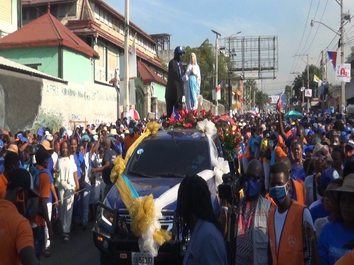 Le contexte haïtien marqué par la déchéance sociale, l’indifférence des pouvoirs publics à se responsabiliser face au drame haïtien, interpelle le clergé catholique. Dans la foule, le désespoir est patent, chacun se cherche une illusion de voir changer les choses. De la méditation du mystère du rosaire aux intentions de prières, le peuple de Dieu désemparé est en quête de lumière en sollicitant l’intercession de la Vierge Marie.