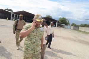 le Commandant en Chef de la PNH Michel-Ange Gédéon s’est rendu ce matin dans le département du Sud-Est ;d’abord à Jacmel et ensuite à Anse-à-Pitres pour évaluer respectivement les installations de la base BLTS mais aussi les besoins dans la perspective de déployer définitivement les éléments de la Polifront le long de la frontière.