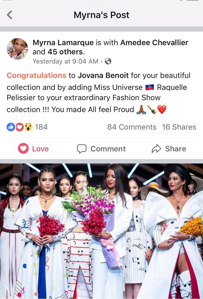Revenons au Vietnam pour signaler la présence d’une dame de la haute couture. Elle est haïtienne et son nom est Jovana Louis Benoît. Pour lancer une de ses collections, Benoît a invité la dauphine de Miss Universe, Raquelle Pélissier à être parmi l’une des figures portant la marque de sa boutique.