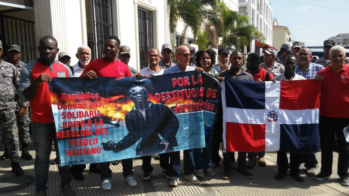Haitiens et Dominicains devant l’ambassade d’Haïti en République Dominicaine reclament le départ de Jovenel Moïse : Comme annoncé , sur l’invitation des organisations de gauche de la société civile dominicaine, des compatriotes haitiens et des frères dominicains se rassemblent actuellement vendredii pour exiger le départ du pouvoir de Jovenel Moïse le 7 Février . Près de 36 organisations et partis politiques de l’autre coté de la frontalière soutiennent cette demande .